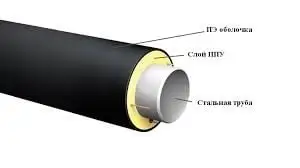 Трубопровод с предустановленной изоляцией представляет собой конструкцию «труба в трубе», которые отличаются диаметром настолько, что между ними неизменно существует зазор, наполняемый термостойким материалом. В большинстве случаев в качестве фасонного термоизолятора выступает пенополиуретан (ППУ), который считается оптимальным по изоляционным качествам в сравнении с массой и объемом, а также практической пригодности использования.