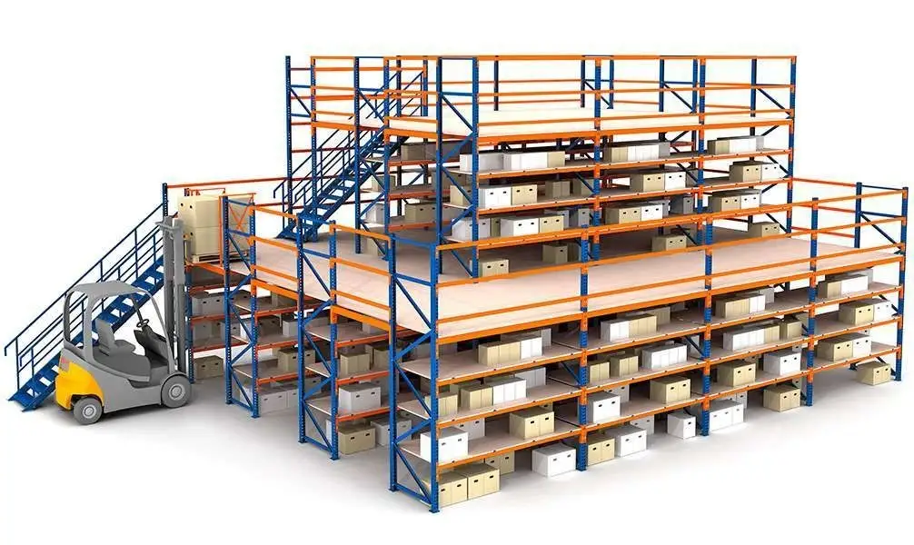 Стеллажи мезонинные применяются на торговых или промышленных складах. Редко их используют в офисах, если объем архивной документации очень большой.
